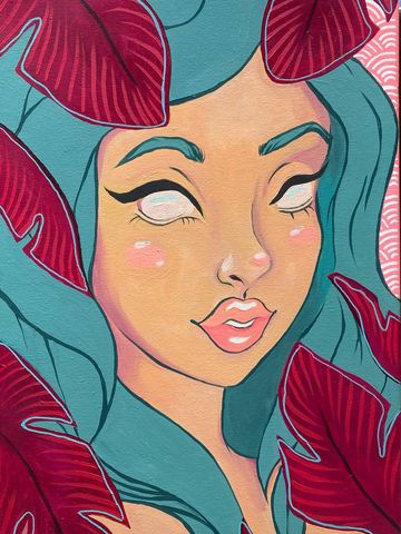 Hand Painted by Danielle Asfour with Spray Paint, Acrylic, & Gouache Paints on Canvas