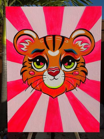 Multi Colored Acrylic Tiger Painting, Unframed.